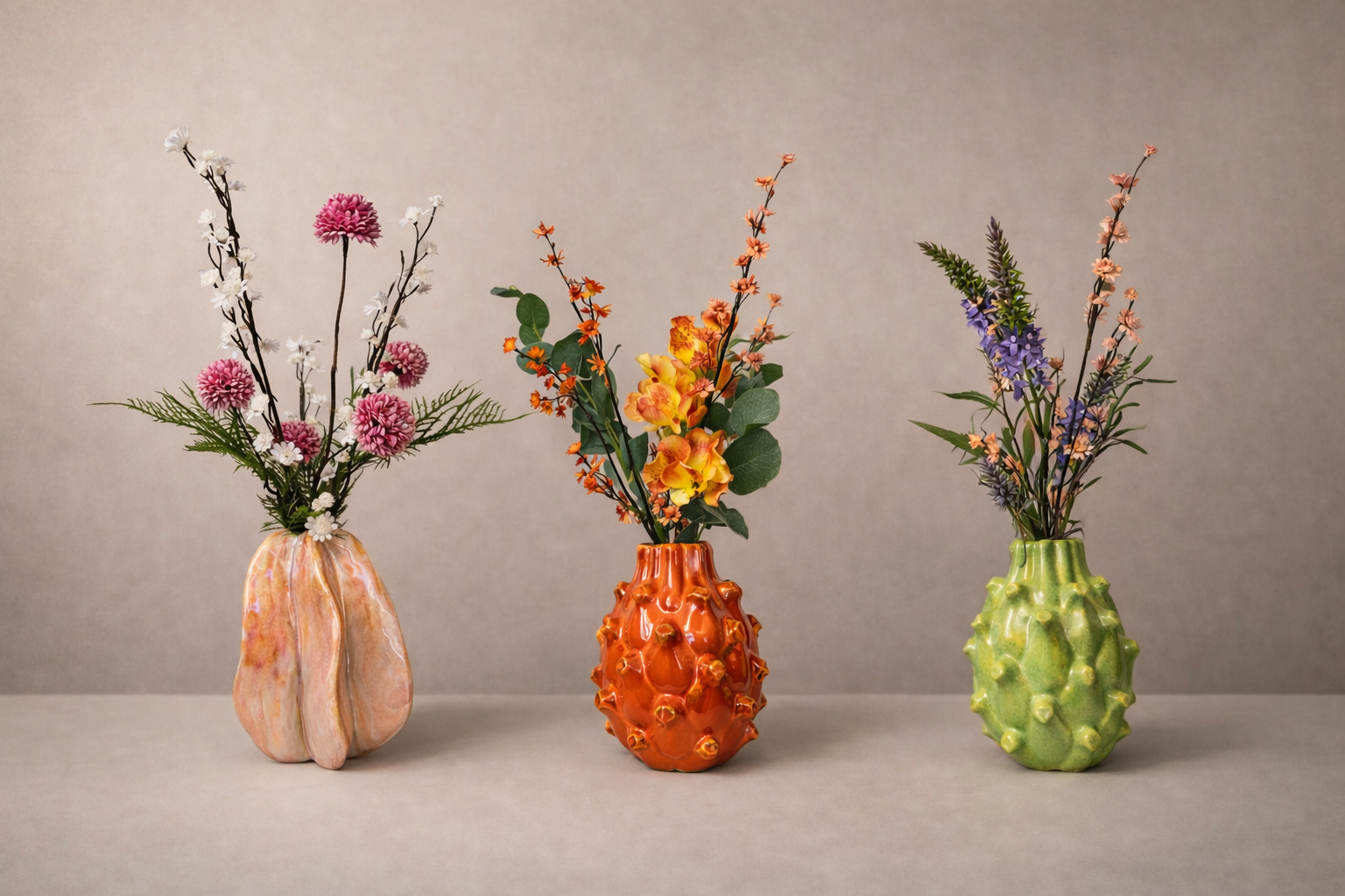 Onze vazen zijn meer dan alleen woondecoratie – het zijn echte blikvangers. Van elegante glazen exemplaren tot robuuste keramieken statement pieces: elke vaas is met zorg geselecteerd om jouw interieur net dat beetje extra sfeer te geven. Combineer ze met onze zijden bloemen of laat ze solo stralen als designobject. Tijdloos, stijlvol en altijd passend bij jouw woonstijl.